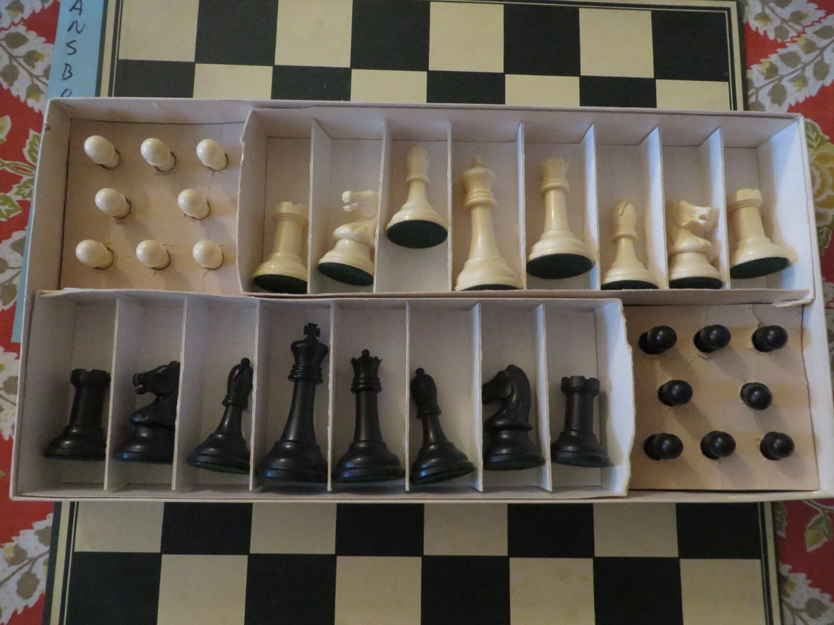 Vintage Allan Troy Chess Set Rare Drueke Black Amp Ivory Plastic Set 35 Box 2 3 Ebay